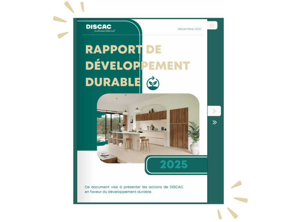 2023 fût une année très riche en actualité chez DISCAC : nouvelle plateforme de marque, nouvelle usine (Izon 2), ligne de fabrication de façades et PSM finalisée, démarrage de notre démarche RSE, lancement de notre Collection Cuisines…